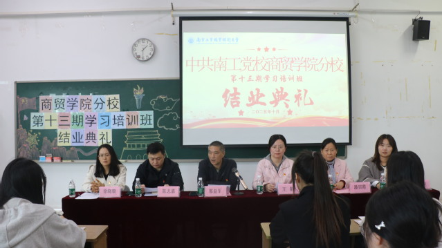 本次结业仪式为商务贸易学院分党校第十三期学习培训班画上圆满句号。结业不是终点,而是新的开始。希望全体学员以此为契机,筑牢信仰根基、补足精神之钙,在青春的赛道上奋力奔跑,展现新时代青年的责任与担当。