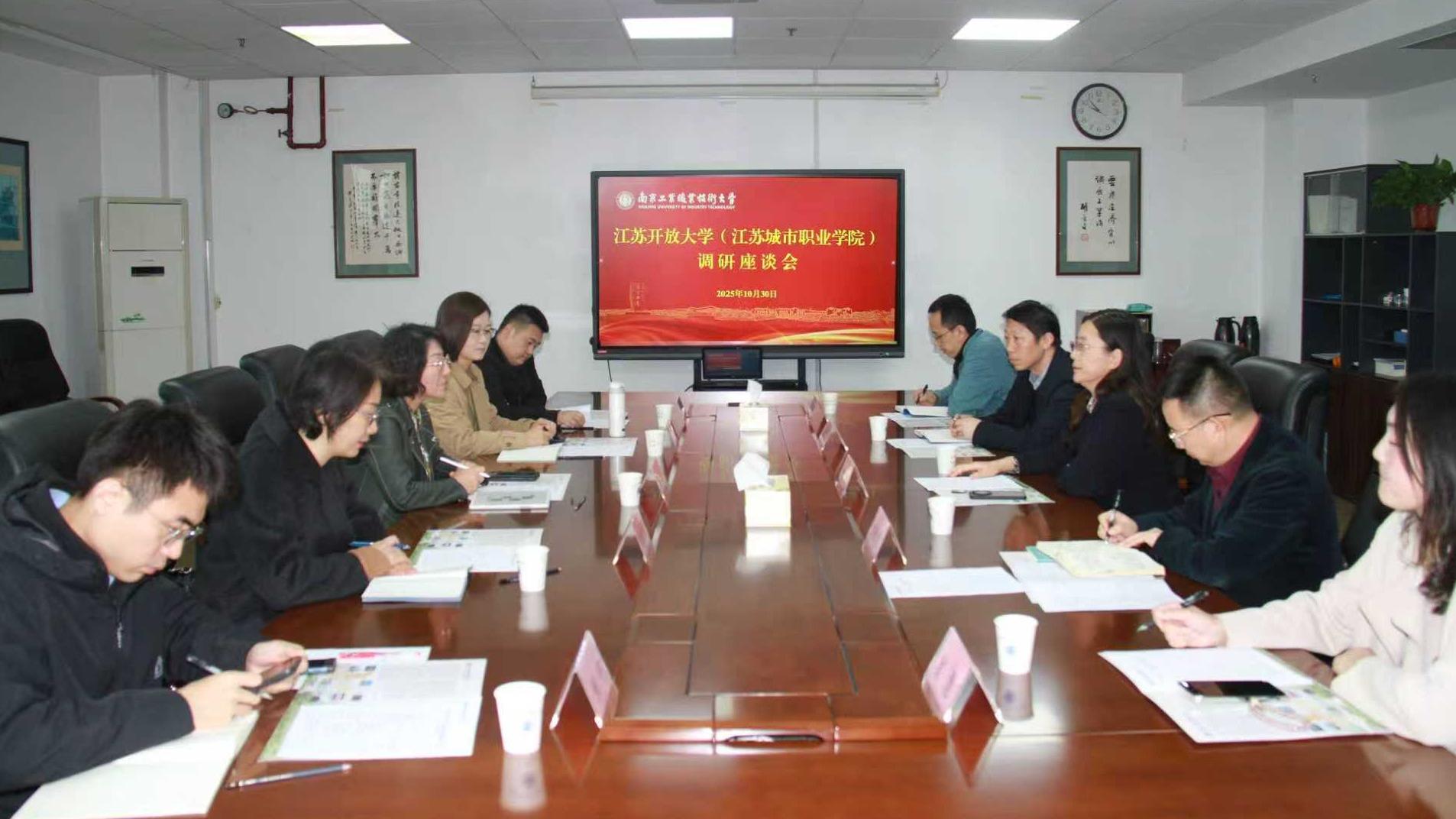 10月30日上午,江苏开放大学(江苏城市职业学院)副校长张晓一行来校调研。我校党委常委、副校长魏萍在行政楼401会议室接待来宾,相关职能部门负责同志参加座谈。