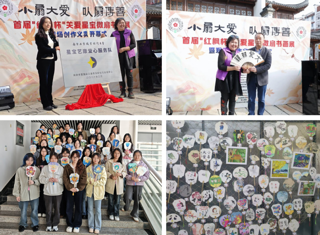 2025年11月2日,由栖霞区文学艺术界联合会、栖霞山风景名胜区管理处及民盟栖霞区基层委员会联合主办,南京工业职业技术大学艺术设计学院星宝艺康爱心服务队等单位承办的首届“红枫杯”关爱星宝书画展在栖霞古镇栖栖小店圆满开幕。本次活动以“小扇大爱·以扇传善”为主题,通过书画艺术展与公益义卖相结合的形式,为孤独症儿童(“星宝”)群体搭建了与社会沟通的桥梁。