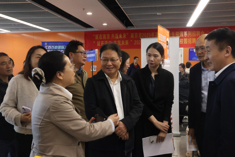 为全力促进我校2026届毕业生高质量充分就业,11月5日,我校联合南京市人力资源和社会保障局、南京市浦口区人力资源和社会保障局在双创大楼举办了“就在南京共赢未来”南京市2025年高校毕业生校园系列招聘会暨“ 就在浦口 共筑未来 ”2025年南京市浦口区秋季校园招聘活动。校党委副书记、校长何学军亲临现场与用人单位代表亲切交谈,各学院相关负责人、毕业班辅导员全程参与活动,近千名毕业生到场求职。