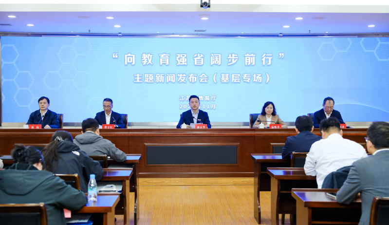 11月6日,“向教育强省阔步前行”主题新闻发布会(基层专场)在苏州职业技术大学举行。南京工业职业技术大学党委书记谢永华、无锡职业技术大学党委书记龚方红、苏州职业技术大学党委书记温贻芳、扬州职业技术大学党委书记马顺圣分别作“职业本科高质量发展”主题发布,省教育厅二级巡视员、办公室(新闻宣传办公室)主任焦伟主持发布会。