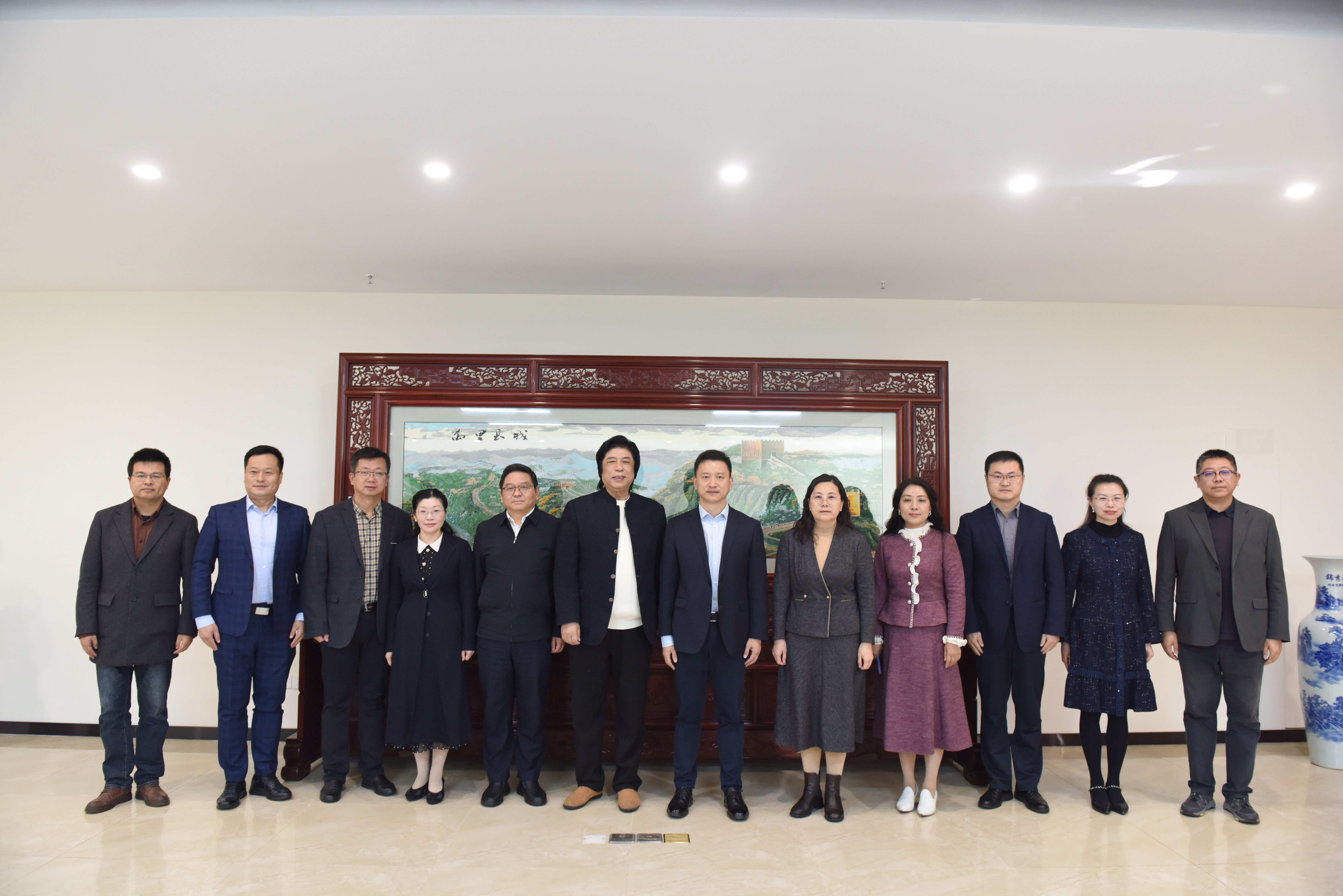 11月12日上午,国家级云锦非遗大师金文作品《万里长城》捐赠仪式暨艺术设计学院非遗技艺传承展示大厅启动仪式在我校大学生创新发展中心隆重举行。江苏汉唐织锦科技有限公司董事长、中国工艺美术大师金文,学校党委书记谢永华,党委副书记浦黄忠,党委常委、副校长魏萍,党委常委、党委组织部、党委统战部部长张莉出席仪式。仪式由浦黄忠主持。
