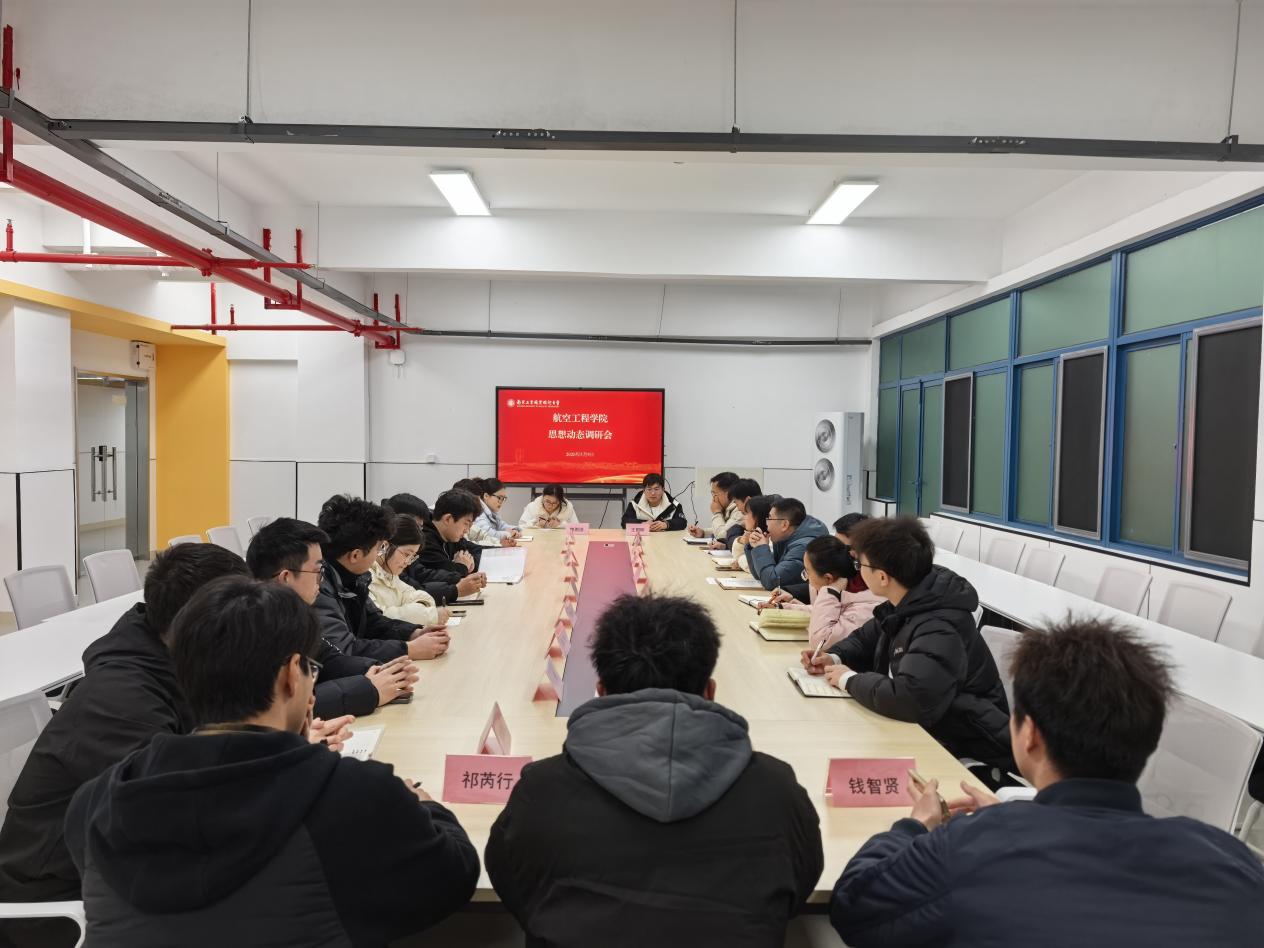 为深入贯彻新时代学生工作和思想教育工作要求,精准把握学生思想动态与成长需求,进一步提升学生工作与思想工作的针对性、实效性和系统性,航空工程学院于3月9日晚在一站式学生社区党建会议室召开学生思想动态调研会。学院领导、全体辅导员及各年级学生代表共同参会。
