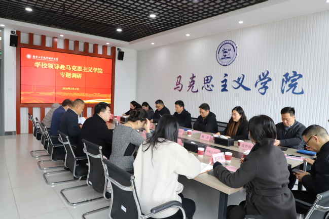 3月11日上午,校党委书记谢永华,党委副书记、校长何学军,党委副书记浦黄忠,党委常委、副校长魏萍带队赴马克思主义学院开展专题调研,党委组织部、党委宣传部、党委教师工作部、计划财务处、教务处(教师发展中心)、科研处等相关部门负责人陪同调研。马克思主义学院领导班子成员及部分教研室主任参加调研。会议由魏萍主持。
