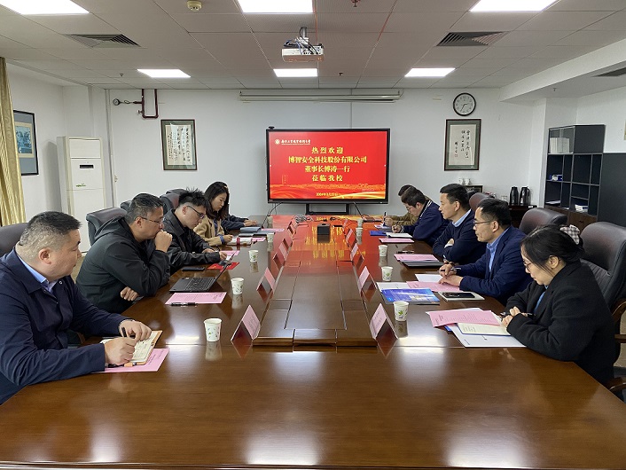 3月27日,博智安全科技股份有限公司董事长傅涛一行来访我校,并在行政楼401召开交流座谈会。我校党委副书记、校长谢永华出席座谈会议,计算机与软件学院相关负责人参加交流。会议由计算机与软件学院党委副书记、院长胡光永主持。
