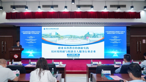 为深化产教融合、推动人才链与产业链协同发展,9月28日下午,由江苏省可再生能源行业协会与南京工程学院联合主办的“江苏省新型电力装备产业校企创新合作暨产才对接活动”在南京工程学院成功举办。江苏省工业和信息化厅二级巡视员卢载贵,南京工程学院党委副书记、校长张仰飞,江苏省可再生能源行业协会秘书长施新春等出席并致辞。省内多所高校、科研机构、地方工信部门及南瑞继保、华鹏变压器等重点企业代表共140余人参与活动。南京工业职业技术大学电气工程学院作为职业本科院校代表受邀参会,并围绕能源电力类人才培养与科技创新作主题报告。
