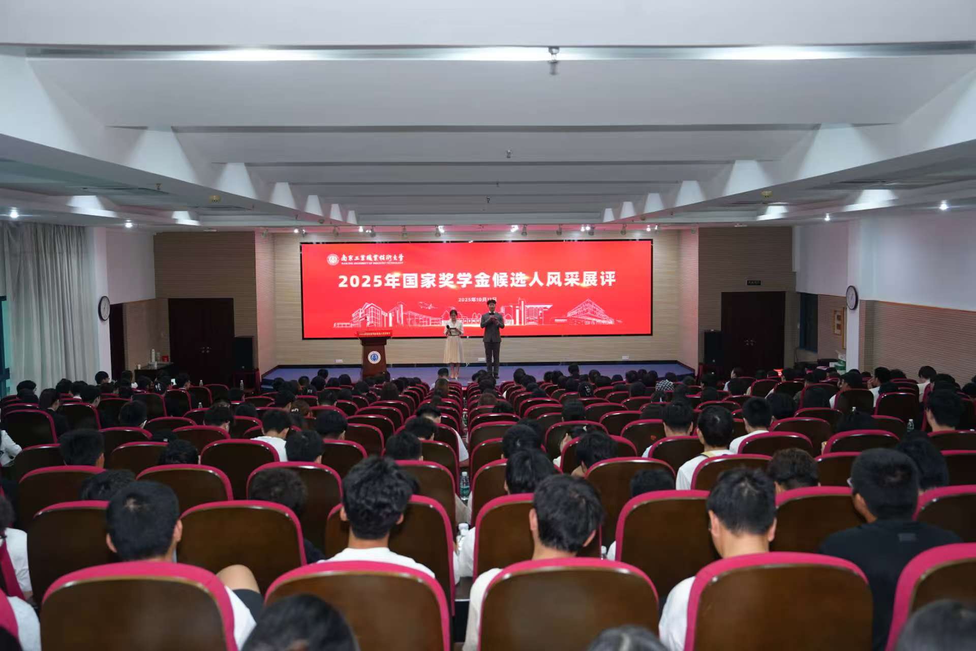 10月11日下午,2025年国家奖学金候选人风采展评在学校学术交流中心报告厅举行。校党委常委、副校长高宏彦出席活动,南京信息职业技术学院学生工作处处长汪继彬、南京邮电大学学生工作处副处长段惠方、南京中医药大学淡安书院副书记陈娟、南京财经大学金融学院党委副书记张士青、浙江经济职业技术学院学生工作处处长杨明峰受邀担任评委。学生工作处相关负责同志,各学院党委副书记、副院长、辅导员代表及200多名学生代表共同参加。