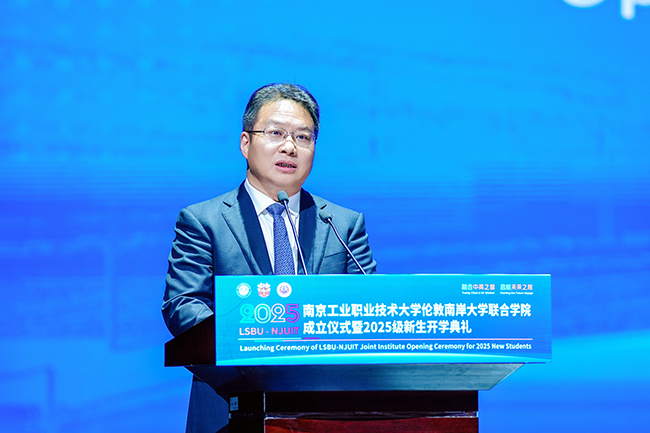 斯图亚特·班纳曼在致辞中表示,与南京工业职业技术大学携手成立联合学院,意义非凡。他对南工的热情接待与精心筹备表示衷心感谢,并指出,这标志着两校合作迈上新台阶。伦敦南岸大学创立于1892年,始终坚持以实践为导向、以社会需求为核心的教育理念,在工程技术与应用科学领域享有盛誉。学校连续三年在《泰晤士高等教育影响力排名》中跻身“减少不平等”全球前十,毕业生薪资位居伦敦现代大学首位。班纳曼指出,教育的使命不仅在于传授知识,更在于激发创新精神与社会责任。此次合作将把中英两国的优质教育理念与资源有机融合,为学生提供兼具学术深度与实践导向的学习平台。最后,他寄语首届学生,要珍惜学习机会,拓展国际视野,在多元文化中汲取智慧,成为具有创新精神与社会担当的新时代青年。