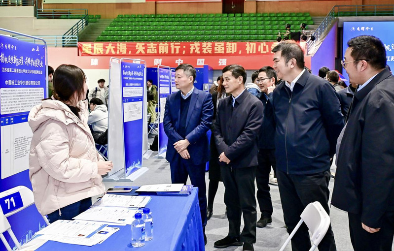 与会领导一同深入招聘现场,了解招聘会组织开展情况,走访招聘展位,与用人单位代表亲切交谈,了解企业经营状况和用工需求,询问毕业生关心诉求。