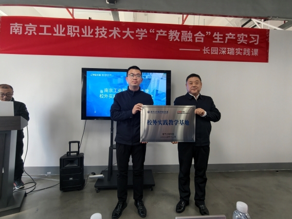12月9日上午,我校与长园深瑞继保自动化有限公司(以下简称“长园深瑞”)在长园深瑞南京分公司举行校外生产性实践教学基地签约暨揭牌仪式。校党委常委、副校长崔新明,长园深瑞南京分公司副总经理梅嵩民出席仪式。电气工程学院党委书记朱旭平,长园深瑞培训及知识转化部部长李凤海,以及双方相关部门负责人、骨干教师代表及全体实习学生参加活动。仪式由长园深瑞高级技术专家马中野主持。