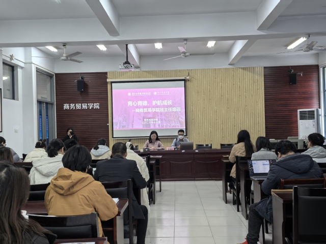 为提升班主任、辅导员队伍的心理育人水平与职业胜任力,12月10日下午,商务贸易学院在求真楼404会议室举办“育心育德,护航成长”班主任培训专题讲座。本次讲座特邀南京邮电大学心理咨询中心教师曲海涛,以“从共情出发”为主题作分享。讲座由学院党委副书记王静主持,全体班主任、辅导员参加。