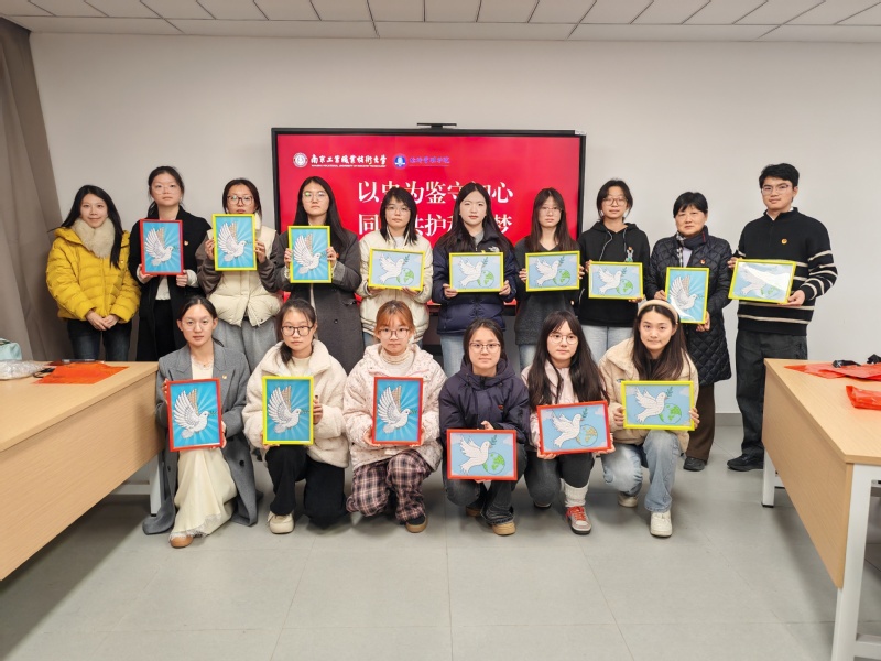 随后开展的手工创作环节中,师生以纽扣为材料,共同拼贴和平鸽图案。崔苏卫老师现场指导创作技巧,并分享自身经历:“南京是一座历史悠久的城市。历史不是尘封的过去,而是照亮未来的明灯。”她向在场学生提出三点期望:一是要永葆赤子之心,以客观理性的态度认识历史;二是要勇担时代使命,将个人成长融入国家发展大局;三是要传承和平理念,以实际行动维护人类命运共同体。