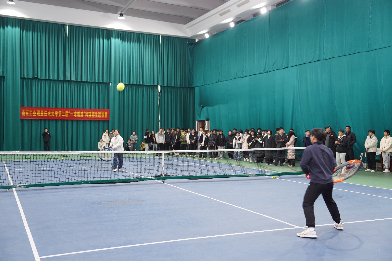 赛场上,师生选手们身姿矫健、斗志昂扬,发球、截击、扣杀等动作行云流水,每一次精准的回击、每一轮胶着的对垒,都引来场边阵阵喝彩。师生同场竞技,褪去了课堂上的严谨与拘谨,多了一份赛场上的默契与协作,球拍的挥动声、清脆的击球声与爽朗的欢笑声交织在一起,奏响了校园活力乐章。经过多轮激烈角逐,来自航空工程学院航制2411班的万泽琨同学凭借稳定的心态和出色的发挥,一路过关斩将,成功摘得本届比赛桂冠。