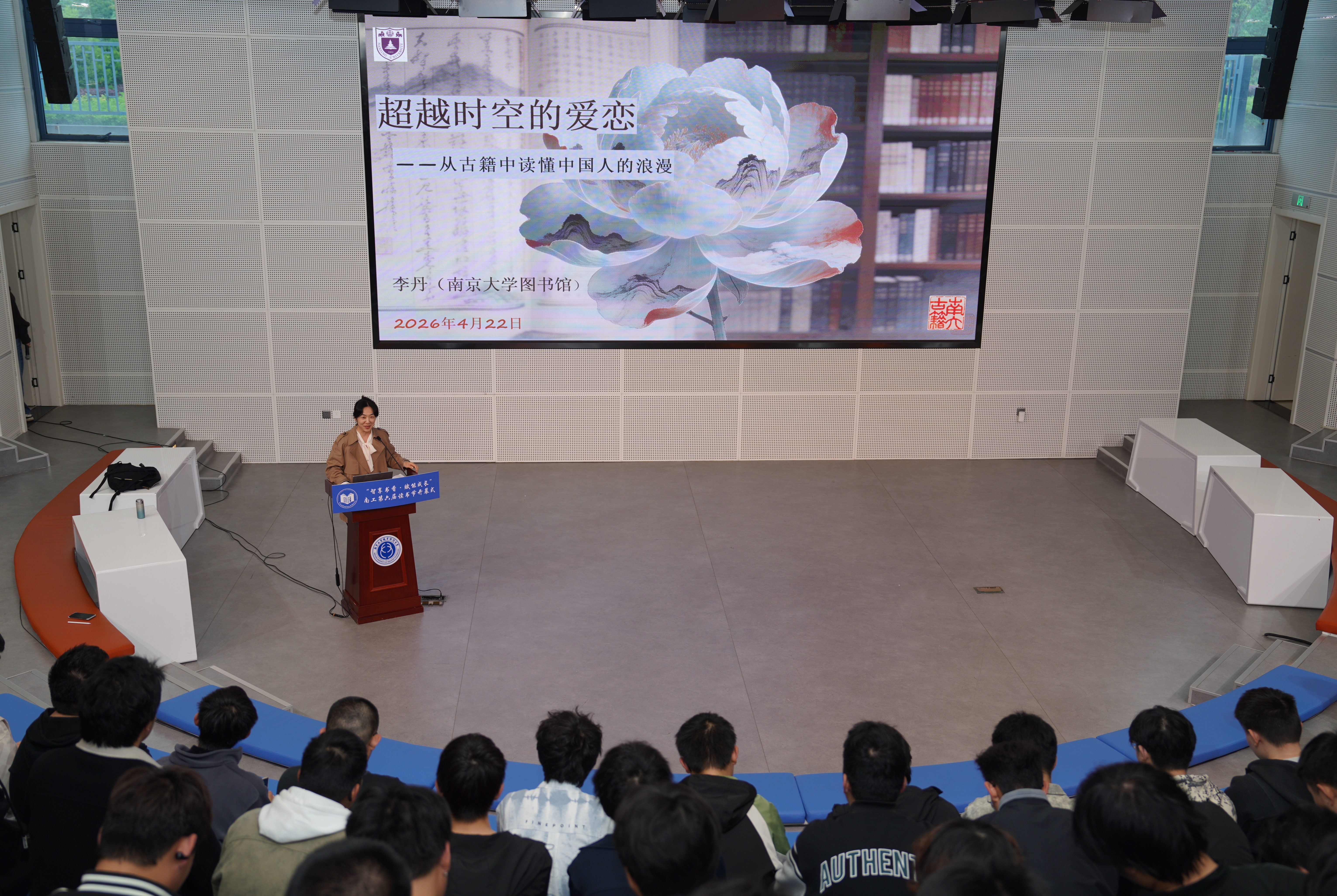 开幕式结束后,南京大学文学博士李丹应邀作《穿越时空的爱恋—从古籍中读懂中国人的浪漫》专题讲座。她强调,中国人的浪漫并非瞬间激情,而是跨越时空的灵魂共鸣与长久守护,这一文化基因至今仍深植于民族血脉之中。李丹通过带领师生品读经典文脉、感悟中华文化魅力,为读书节开幕式增添深厚学术底蕴。