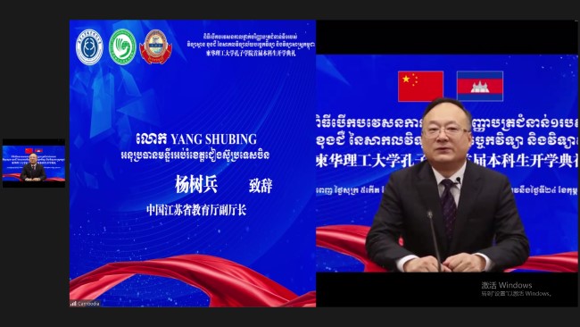 杨树兵指出,近年来,江苏认真落实“一带一路”倡议,充分发挥江苏教育优势,着力提高对外开放水平,与柬埔寨教育合作硕果累累,柬华理工大学孔子学院将中文和职业本科教育相融合的探索将开辟“中文+职业教育”新路径,助力“一带一路”双循环。他要求,一是希望同学们珍惜学习时光,学好中文,掌握更多专业知识,努力成为中柬友谊的使者;二是希望南京工业职业技术大学充分彰显国际中文教育和外国留学生培养的实力和特色,培养既懂语言又懂技术的复合型专业人才,满足柬埔寨经济发展建设对人才的需求;三是希望柬埔寨各界继续支持柬华理工大学孔子学院的建设,共同携手把孔子学院打造成中柬教育交流合作样板,为推动中柬两国长久友谊做出更大的贡献。