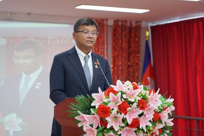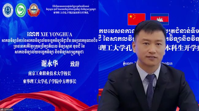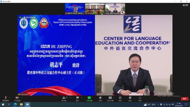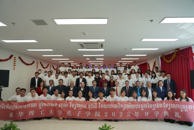 2月24日,柬华理工大学孔子学院首届中柬“双学历”本科职业教育新生开学典礼如期举行。中国驻柬埔寨大使馆大使王文天,柬埔寨教育、青年、体育部大臣韩春那洛阁下,柬华理事总会会长、柬华理工大学孔子学院柬方理事长方侨生勋爵,中国教育部中外语言交流合作中心副主任胡志平(正司级),江苏省教育厅副厅长杨树兵,南京工业职业技术大学校长、柬华理工大学孔子学院中方理事长谢永华参加典礼并致辞,南京工业职业技术大学党委常委、副校长孙雁飞及孔子学院管理办公室相关负责人参加典礼。柬埔寨柬华理工大学、皇家科学院孔子学院、马德望大学孔子学院、国际中文教育与教师教育学院等教育机构代表、柬华理事总会、中国援助柬埔寨中医医疗队、中建八局、中通国际物流、柬埔寨互联网创投联盟等在柬中资企业代表,柬华理工大学孔子学院首届本科生共同出席开学典礼。此次开学典礼通过线上线下相结合的形式同步直播,共有200余名师生和嘉宾参加。
