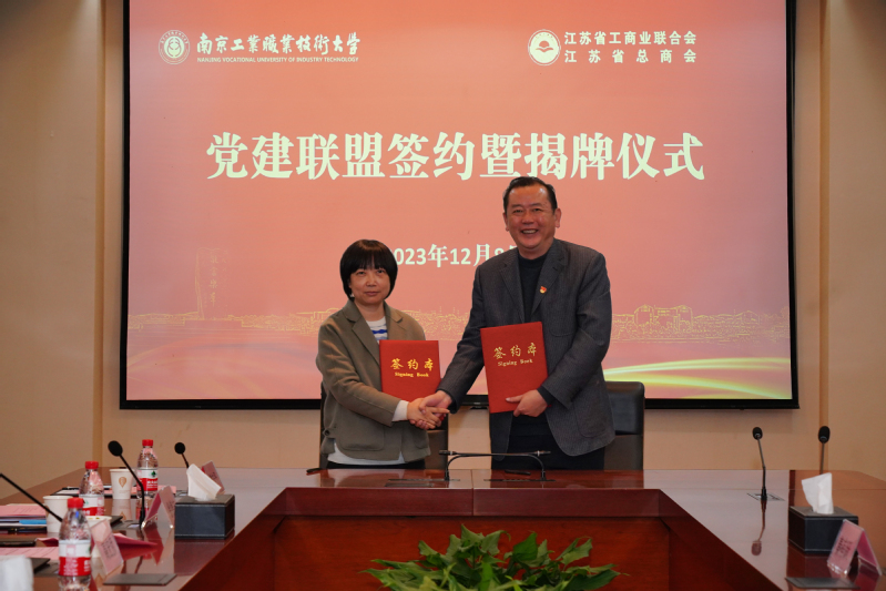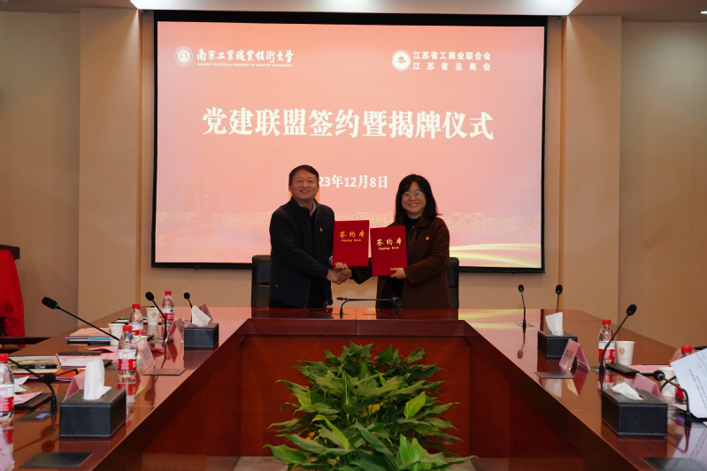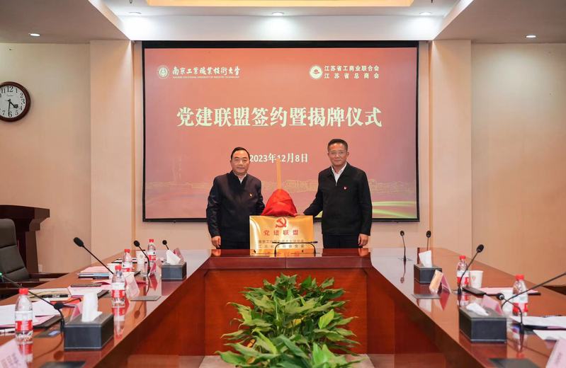 12月8日下午,我校党委与江苏省总商会党委在仙林校区举行党建联盟签约暨揭牌仪式。江苏省工商联二级巡视员李晓东、我校党委书记吴学敏出席签约仪式并共同揭牌。
